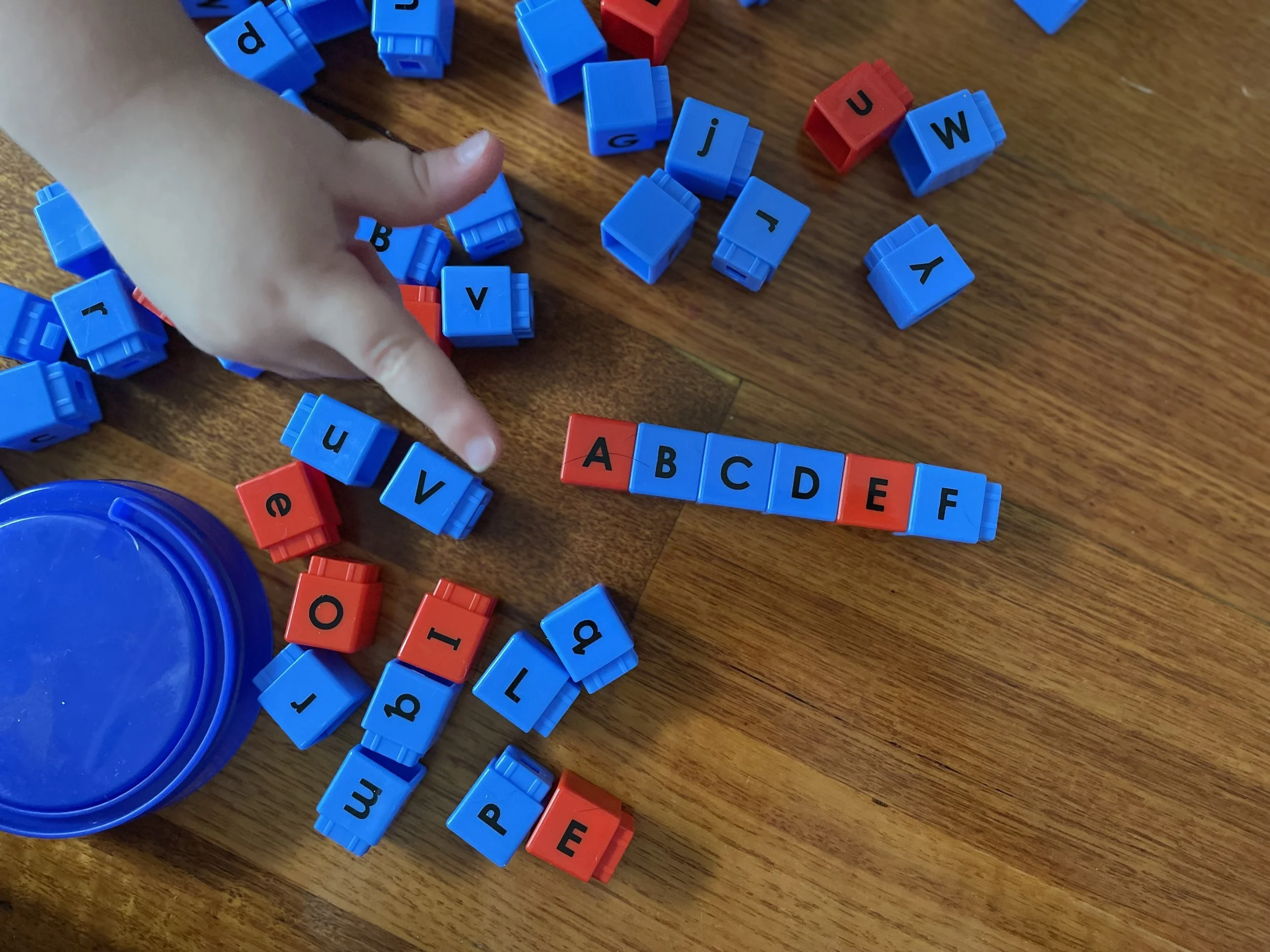 Any version of a set of upper & lower case letters that can be moved by hand. Think Unifix blocks (see our Instagram post), bricks (also posted), wooden cubes, Post-Its hand made, get creative.