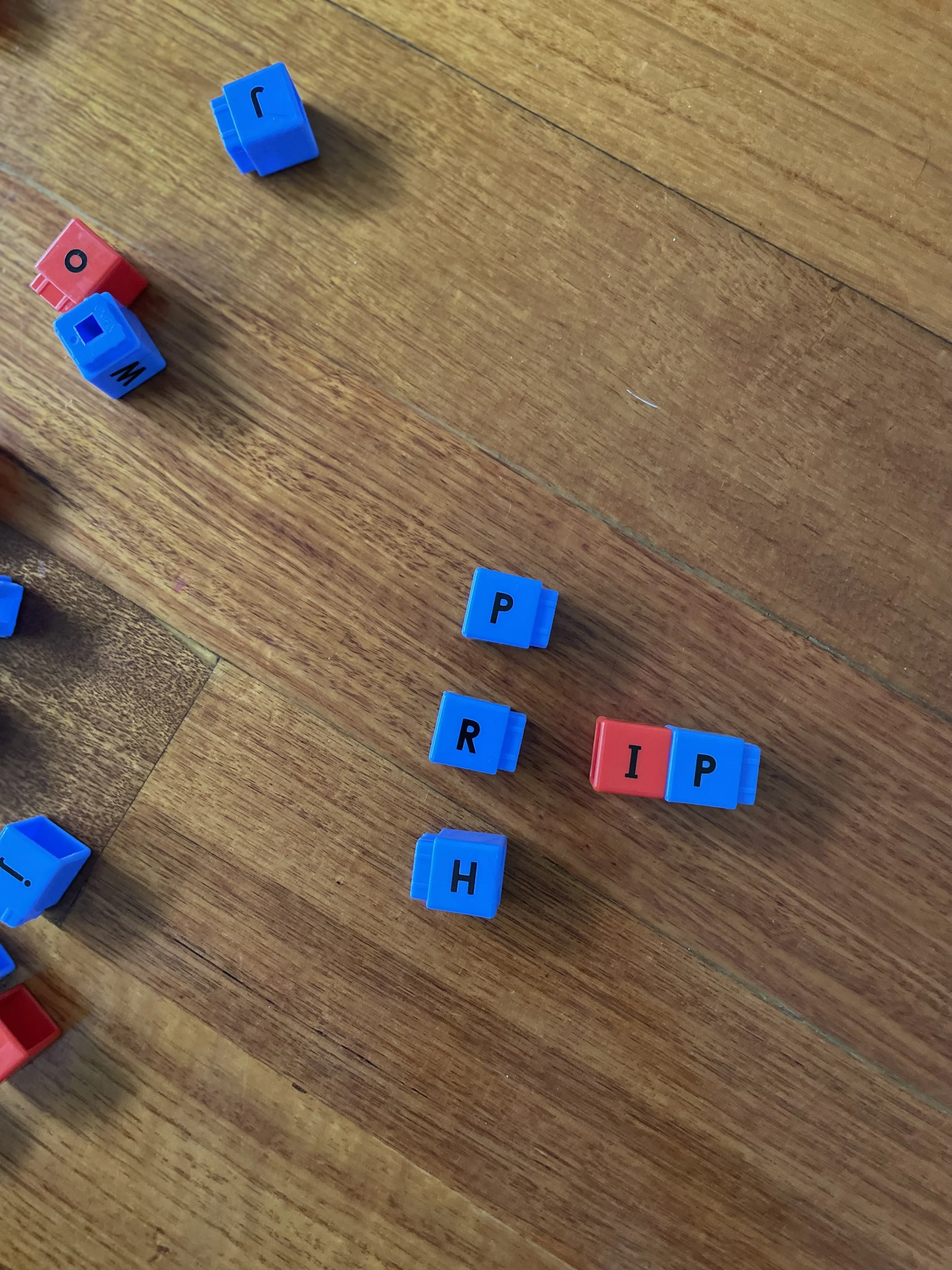 Think of short three letter words (we like CVC words to start). Increase the difficulty by choosing CCVC words (we cover these in Episode 4a).